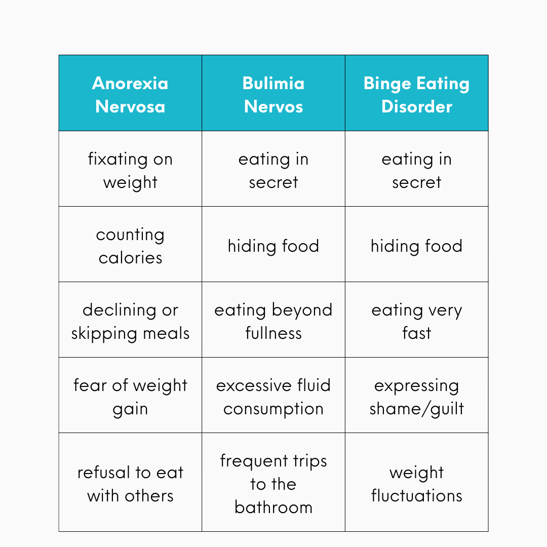 It is so important that individuals working with athletes can identify the patterns and warning signs of disordered eating. These patterns exhibited by athletes are often viewed as “discipline” and “commitment” when in reality the subtle changes in mood, training habits, and even teammate interactions can be a sign that the athlete is struggling. It is important to note that an athlete presenting with one of these signs does not automatically diagnose an eating disorder, but it can create an opportunity to check in and offer support before an issue progresses. Not every athlete with an eating disorder will look the same but early detection is crucial to providing athletes with supportive care so that they get the help they deserve.