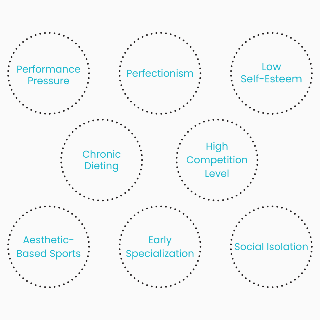 Athletes often experience a combination of factors that increase this risk of developing an eating disorder. These factors include a blend of physical demands, psychological traits, and environmental influences that make athletes particularly vulnerable. Here are some of the most common factors across sports.