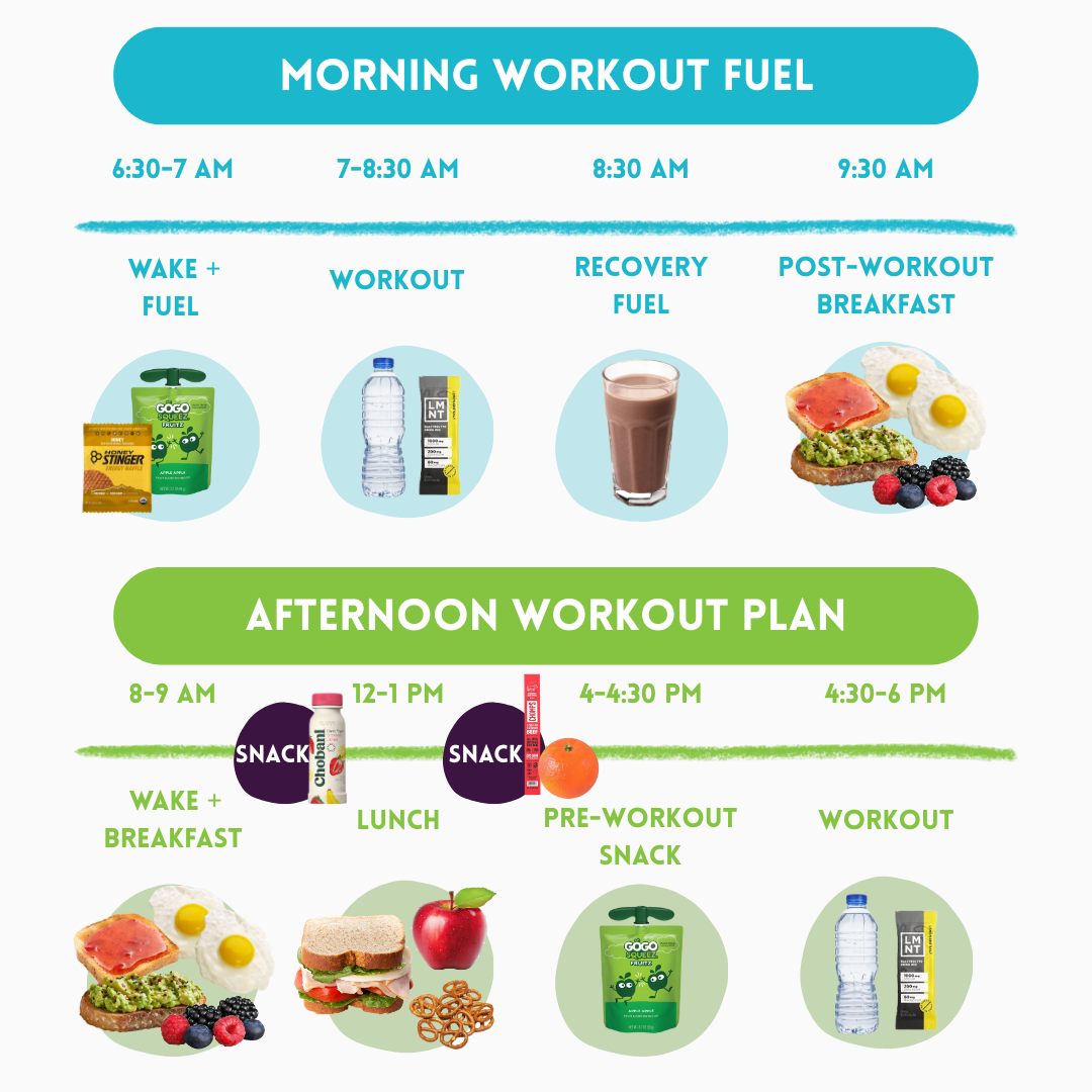 Tip: eat every 3-4 hours, have a snack 1.5-2.5 hours after a full meal, and fuel with a pre-workout carbohydrate to support performance