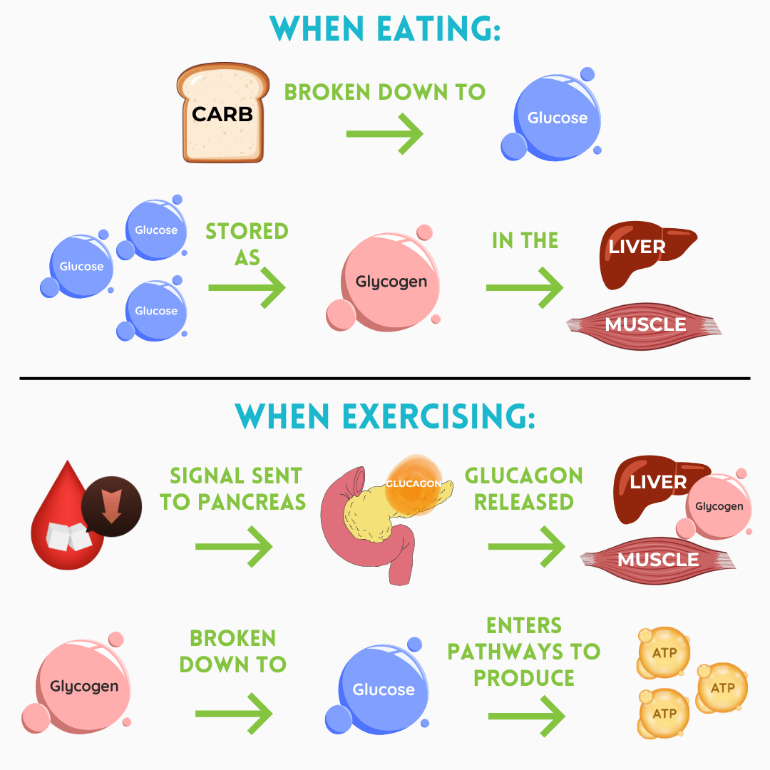Energy is crucial for the body to function and especially important for the brain which demands the most energy. Carbohydrates are broken down into glucose, the body’s preferred energy source. Glucose is then stored as glycogen in the liver and muscles. During exercise, muscles use glucose, causing blood glucose levels to drop. The pancreas and hypothalamus detect low blood glucose, triggering a hormonal response. It releases glucagon to signal glycogen to break down in a process called glycogenolysis. Glycogen breakdown in muscle produces ATP for work, while breakdown in the liver raises blood glucose. As exercise continues, glycogen stores become progressively depleted and need to be replenished to support recovery. When beginning a workout fasted, carbohydrates are unavailable for glucose production, so glycogen stores are depleted early. Signs of depleted glycogen stores and low blood glucose levels include lightheadedness, dizziness, and fainting. When energy availability is low, the body prioritizes glucose for essential organs like the brain and reduces energy supply for other functions. Starting a workout with glycogen stores already depleted is a limiting factor for performance and also impacts the body's stress response and metabolism.